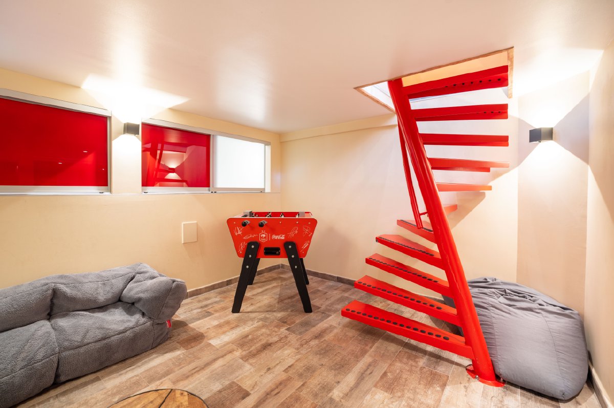 Au sous-sol, laissez-vous tenter par l’immense douche intérieure (1,70m x 1,20m) et le spacieux sauna pour 6 personnes, véritables invitations à la détente après une journée au grand air. Les enfants (et les grands !) apprécieront le baby-foot Stella type toi & moi pour des parties endiablées.