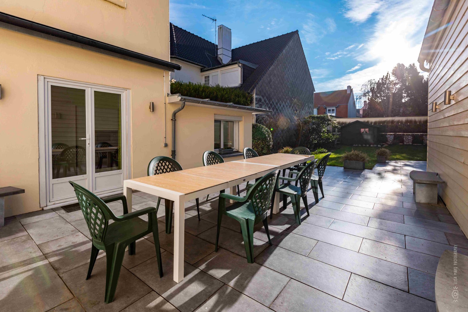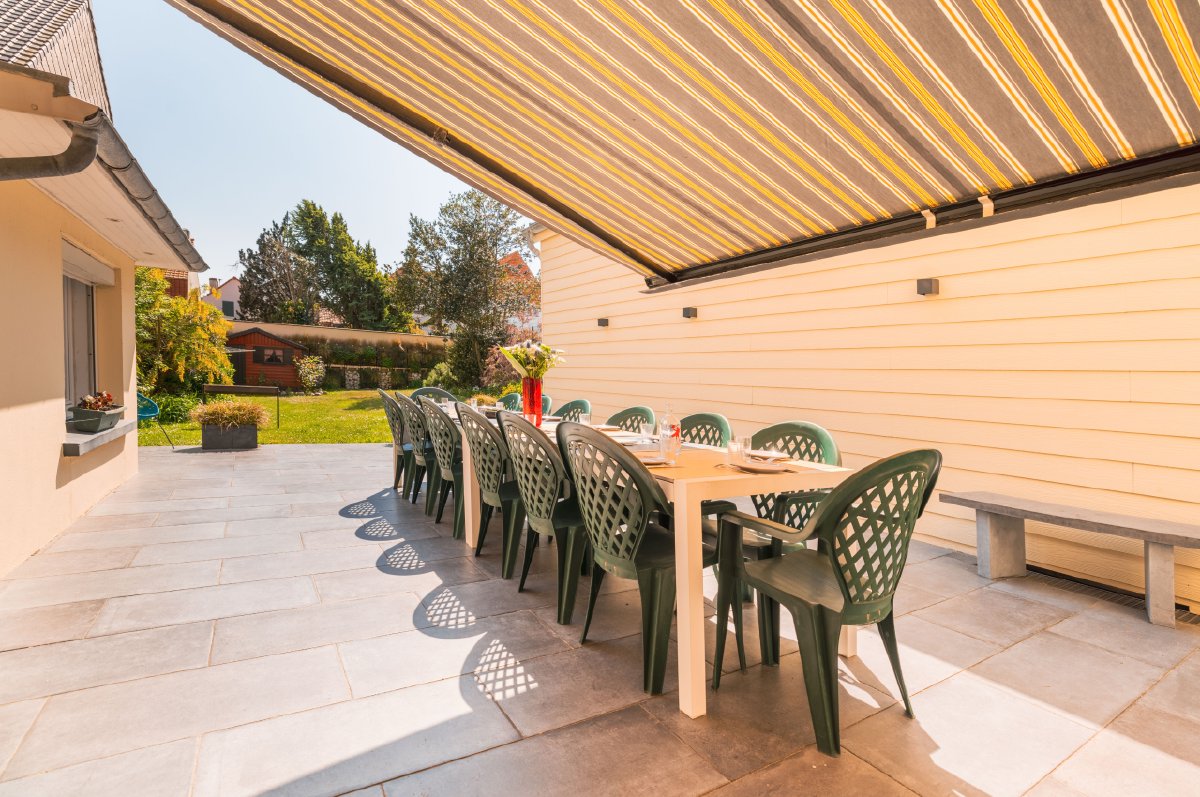 Le jardin clos et la vaste terrasse exposés plein sud deviennent le théâtre de vos moments de partage autour de la grande table de 14 couverts. La douche extérieure, avec son eau à température régulée, facilite le quotidien des familles en permettant de dessabler les enfants qui rentrent de la plage.